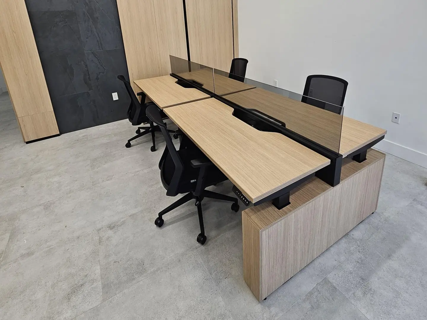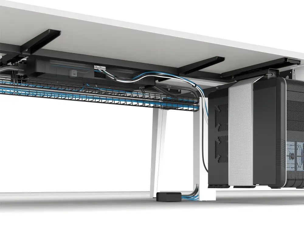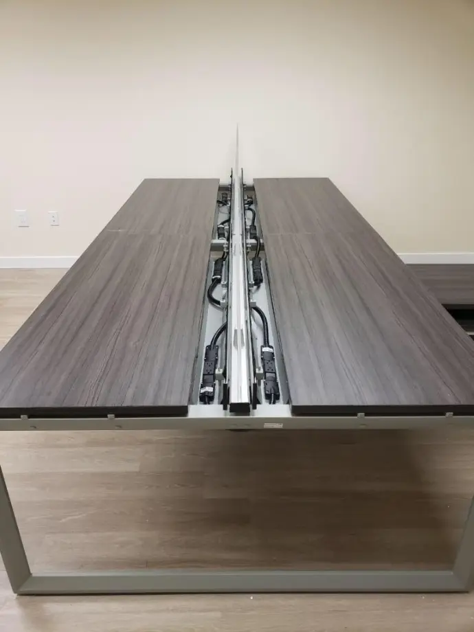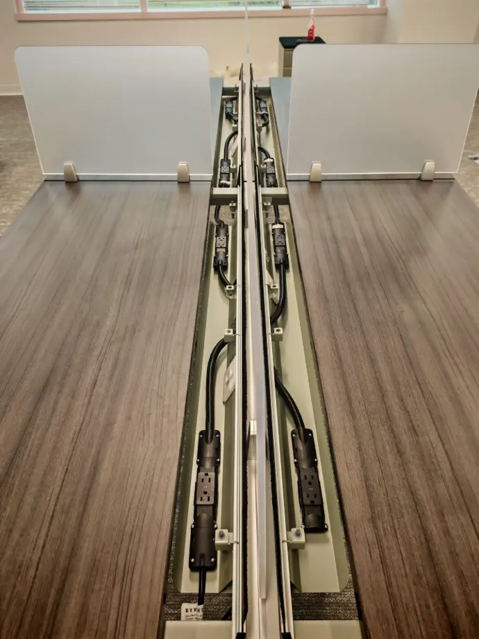 Convenient outlet placements, smart cable routing, and optional data knockouts keep the workspace clutter-free while ensuring every user stays powered and connected. The result is a modern, efficient setup that supports today’s technology-driven workflows without sacrificing aesthetics.