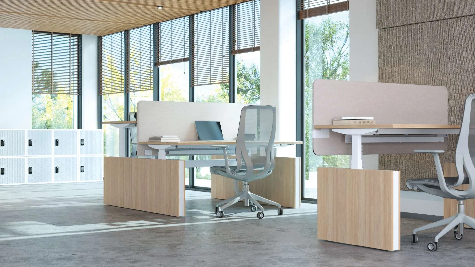While benching promotes openness, optional divider screens and acoustic elements provide just the right amount of privacy. These features help reduce visual distractions and soften ambient noise, allowing employees to stay focused without losing the collaborative benefits of a shared workspace.