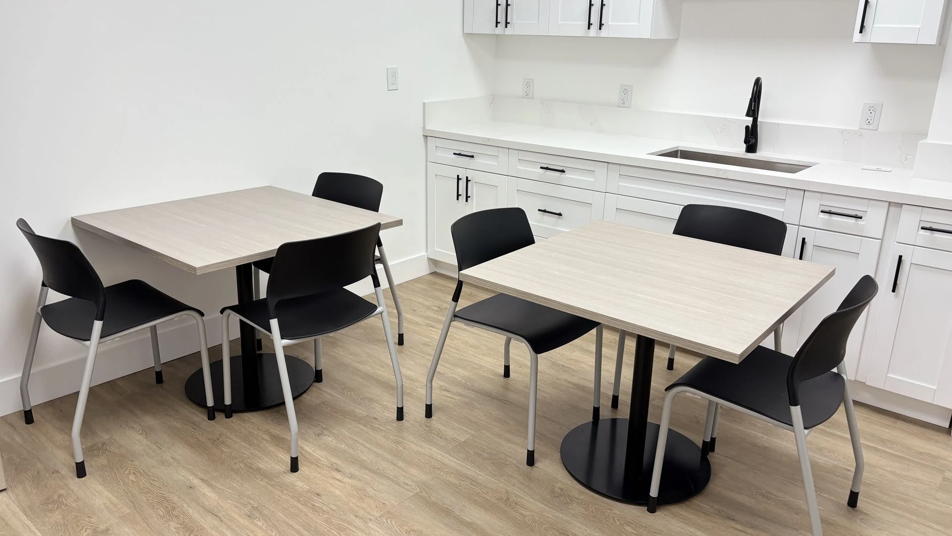 - Breakroom – Inviting area for informal gatherings and employee breaks.