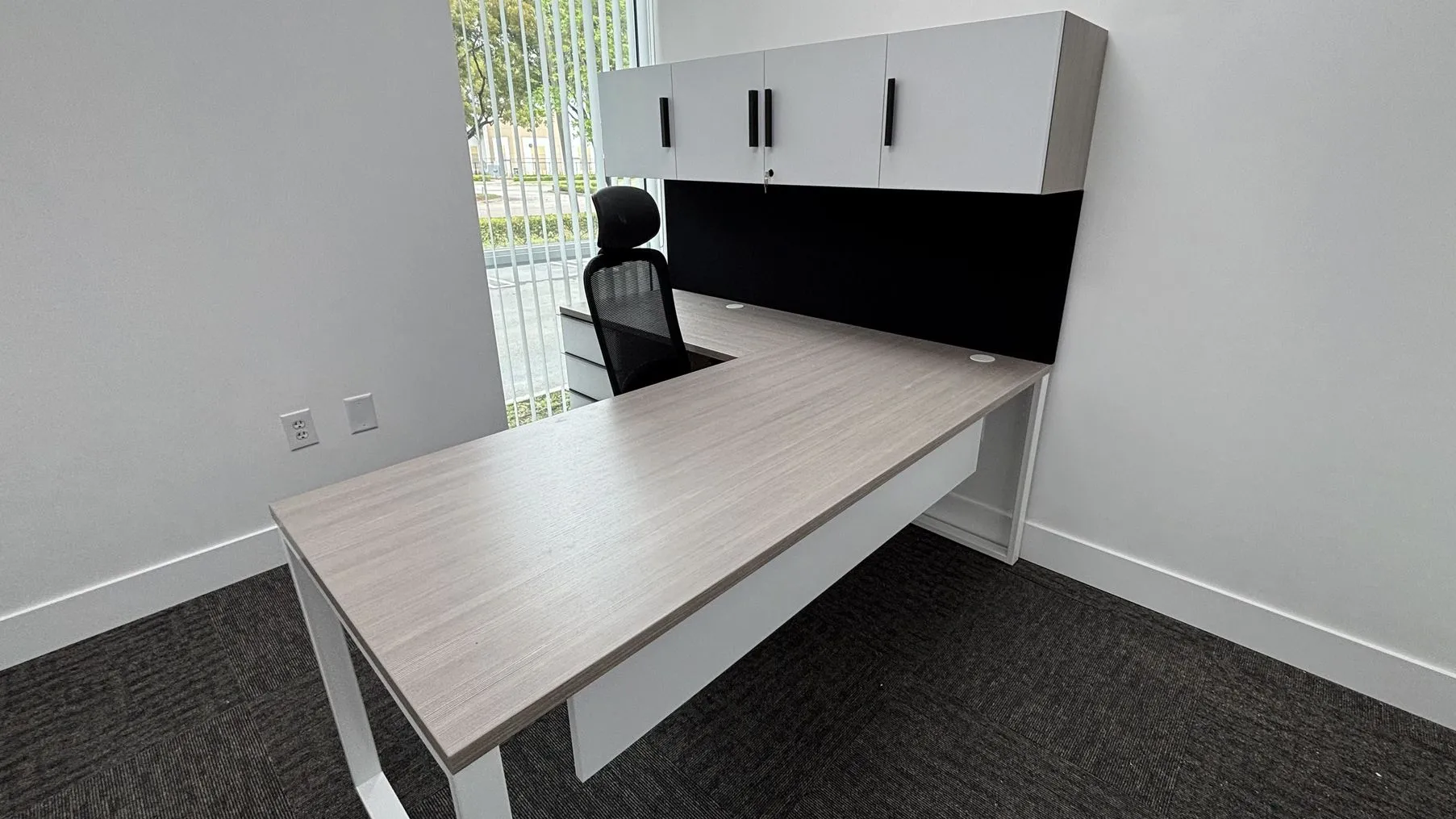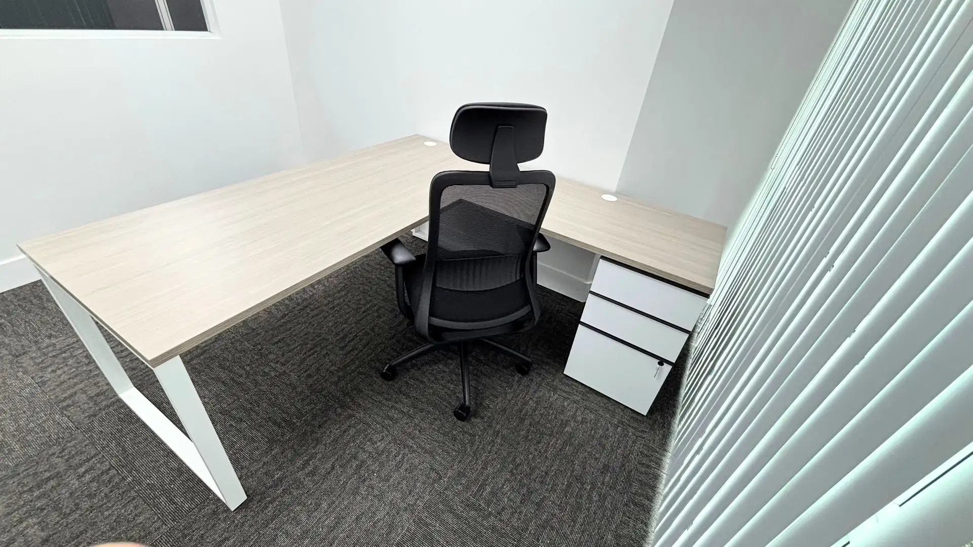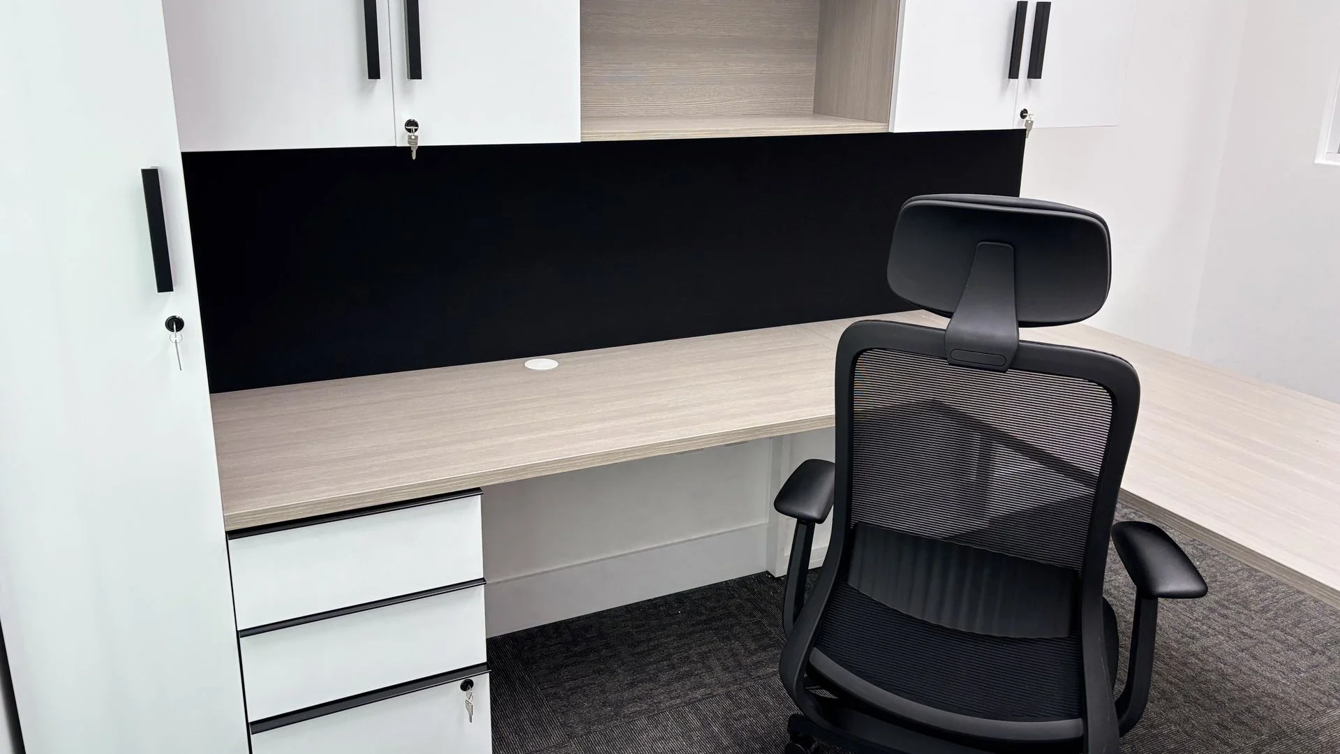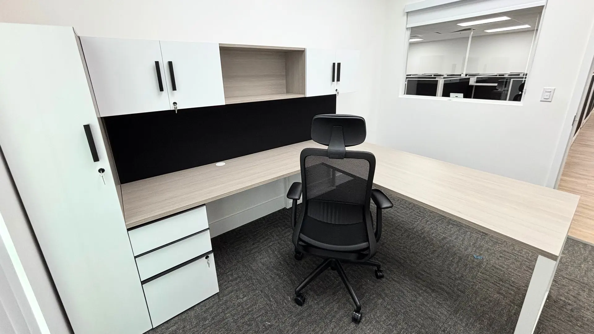 - Private Offices – L-shaped height adjustable desks, ergonomic chairs, and filing solutions.