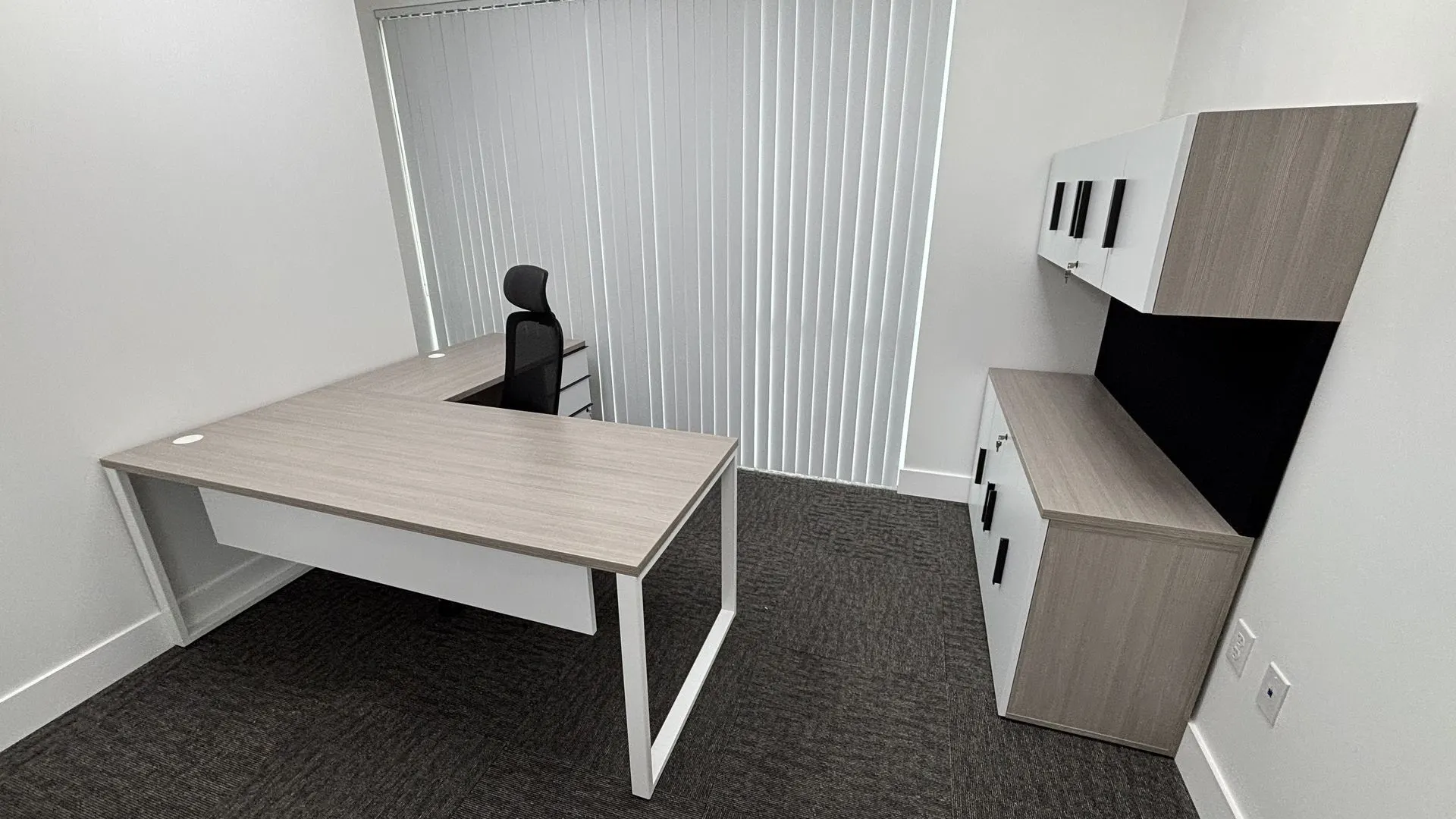The finished office delivers a modern, professional workspace that supports productivity, collaboration, and daily operations. With clean lines, an open layout, and thoughtful furniture solutions, Swarm Transport now has a space that is both efficient and visually cohesive—built to support their team now and into the future.