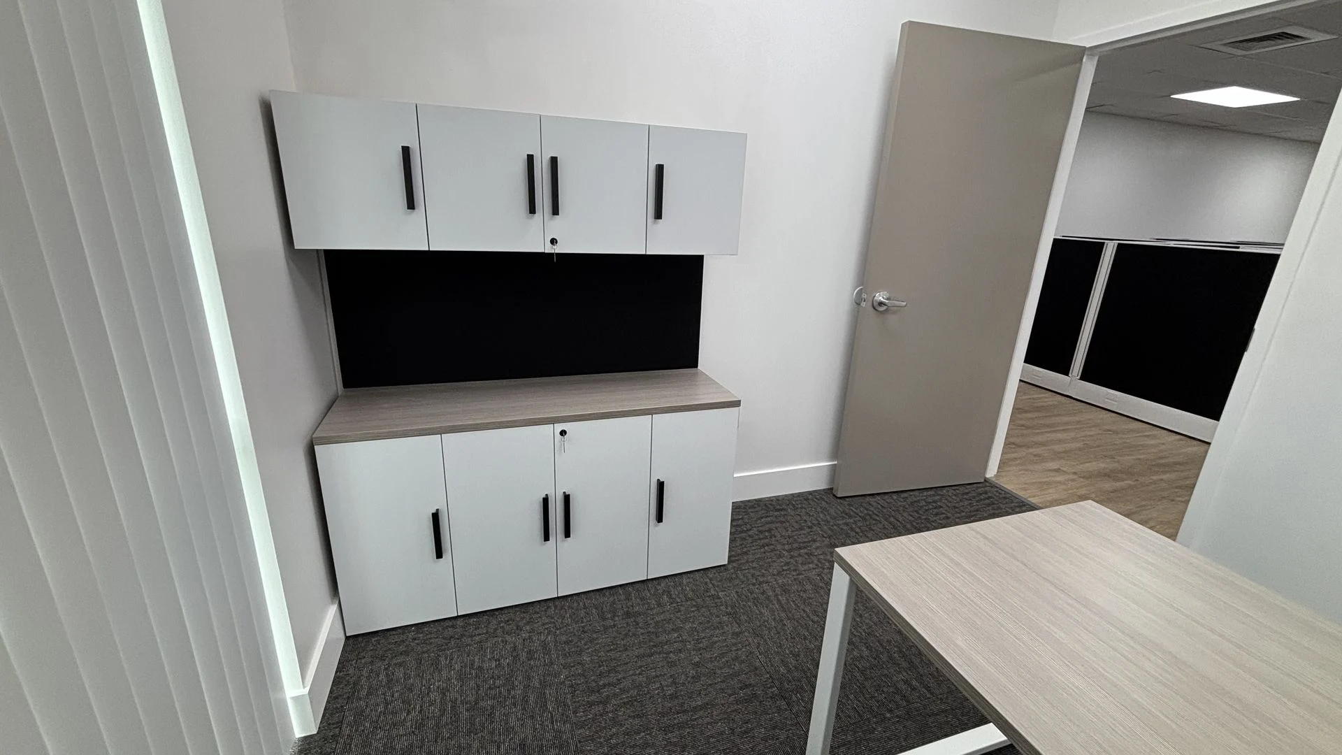 Clear circulation paths and visual consistency were key throughout the office, ensuring every area feels connected and easy to navigate. The result is a workspace that is clean, modern, and built to support the team’s day-to-day operations.