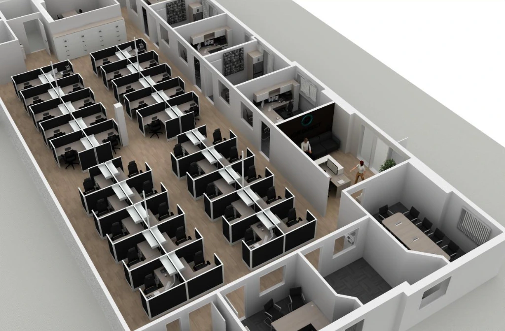 - Cubicle Area – Streamlined workstations that promote collaboration and efficiency.