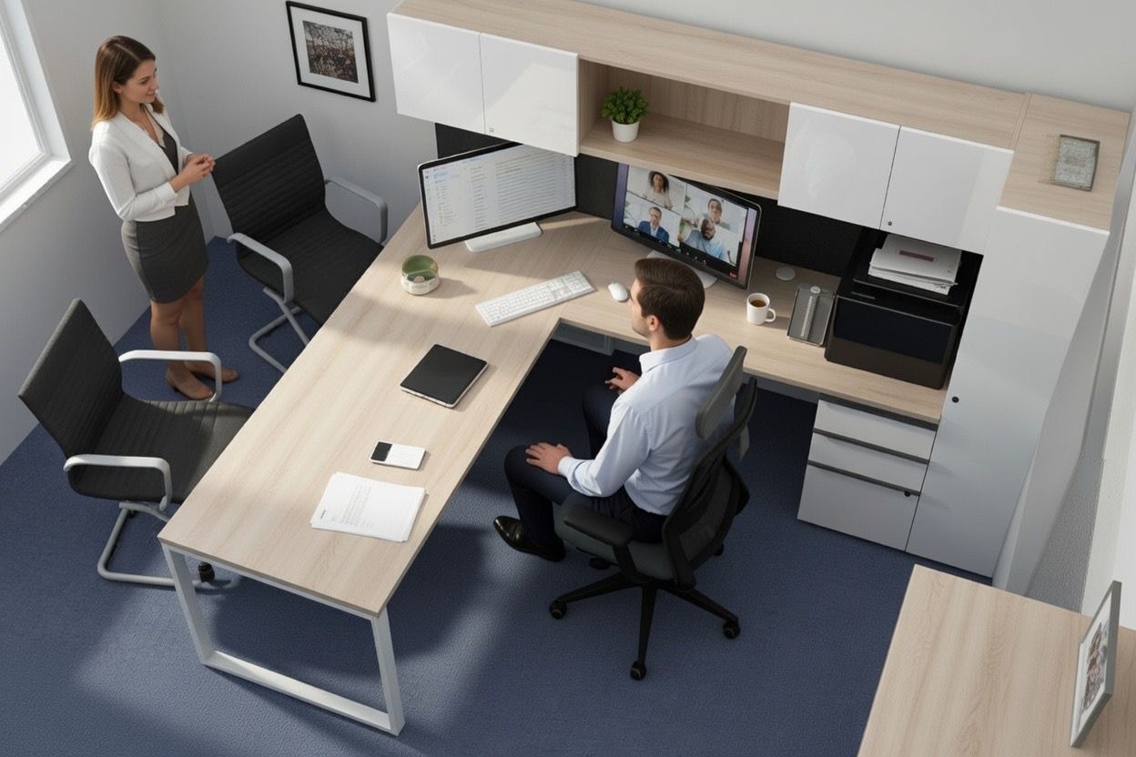 Together, these solutions create a cohesive, well-structured workspace that supports productivity while maintaining a clean, modern look throughout the office.