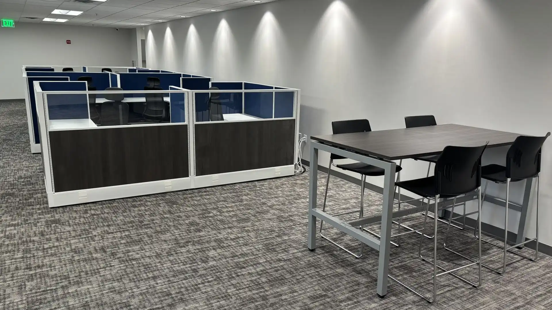 We designed a cubicle configuration that made the most of the available footprint without sacrificing comfort or circulation. The plan balanced private work areas with open spaces that encourage collaboration and movement throughout the office.