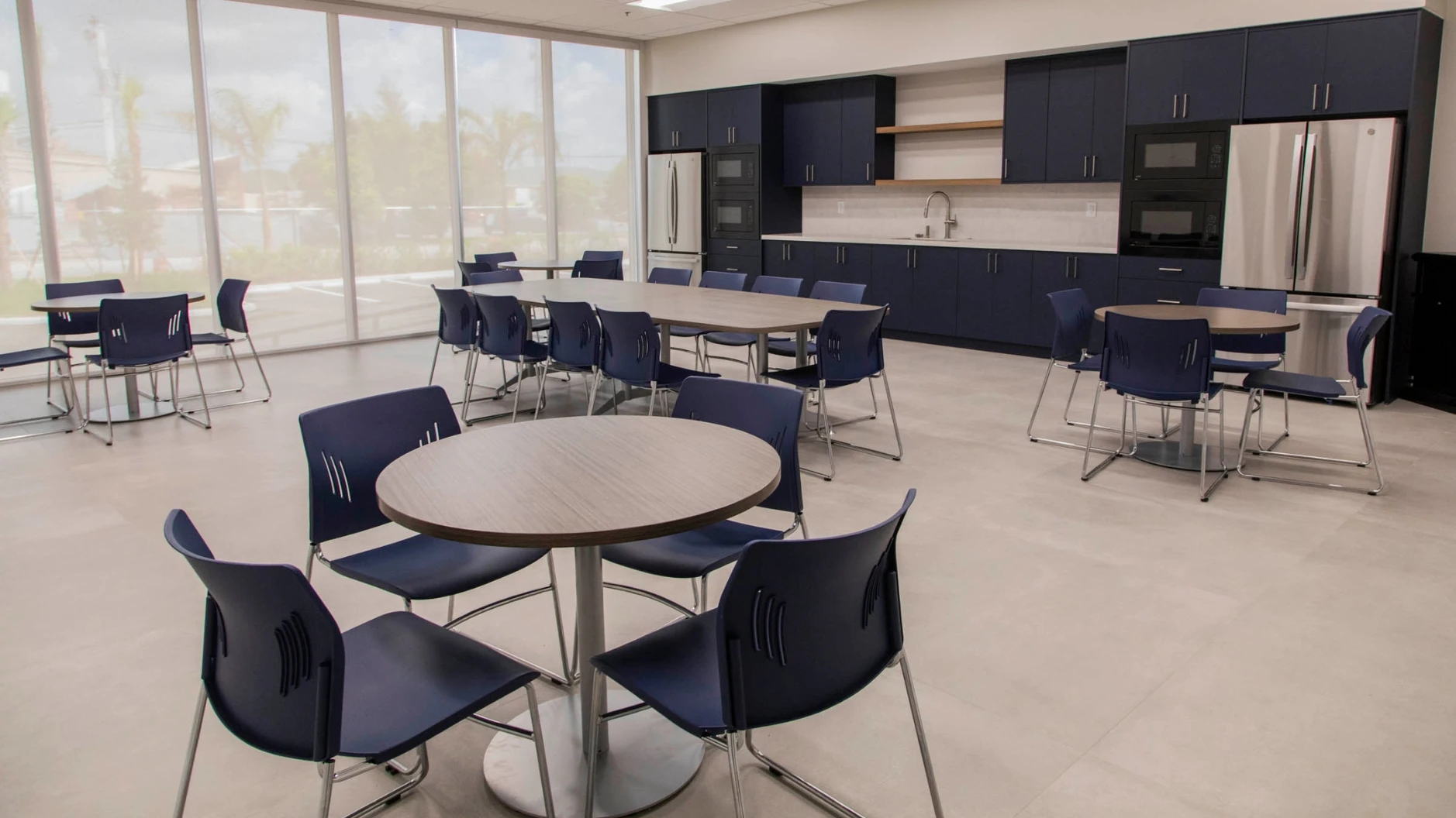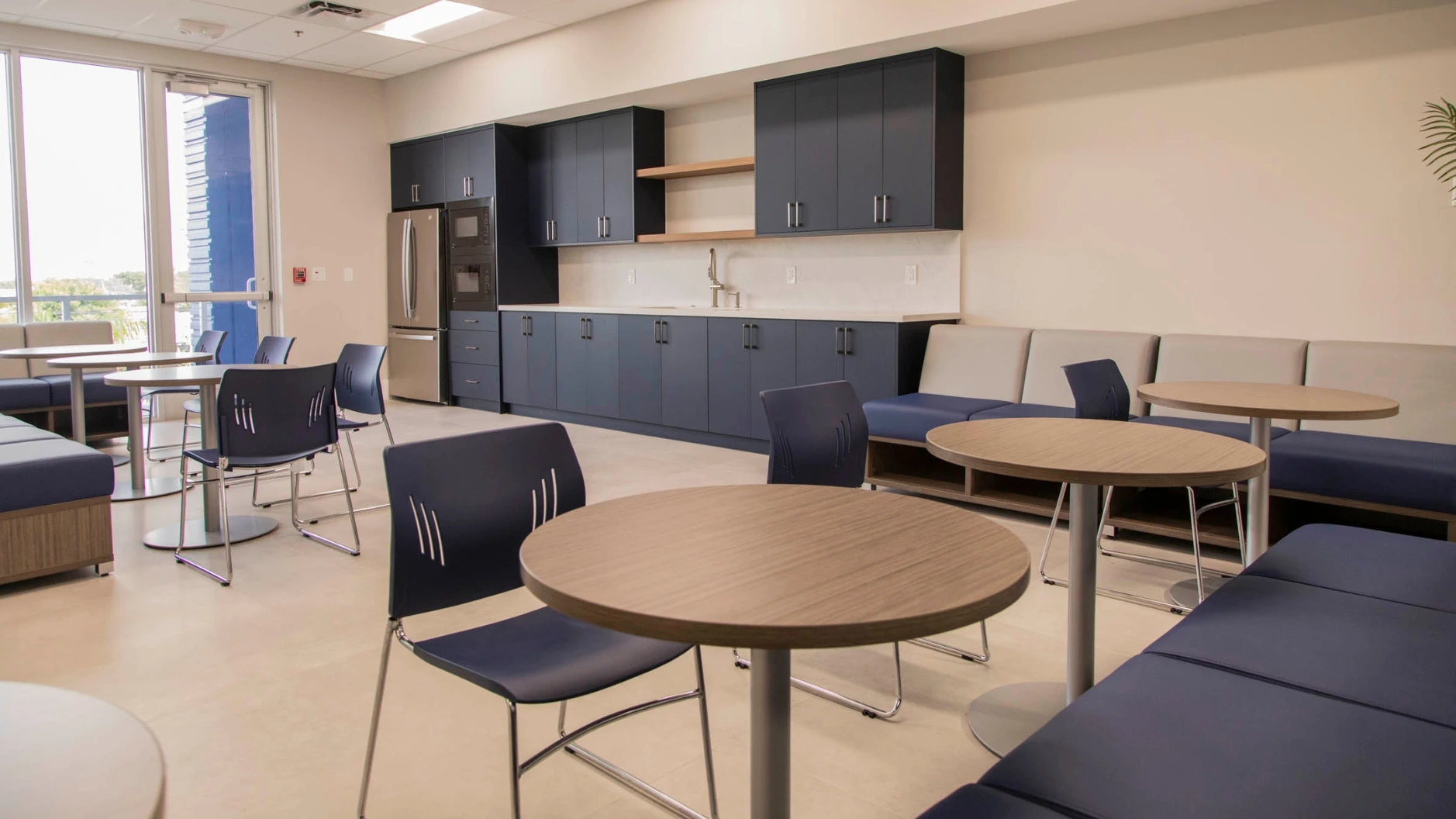 - Breakrooms – Inviting setups for meal breaks and informal conversations