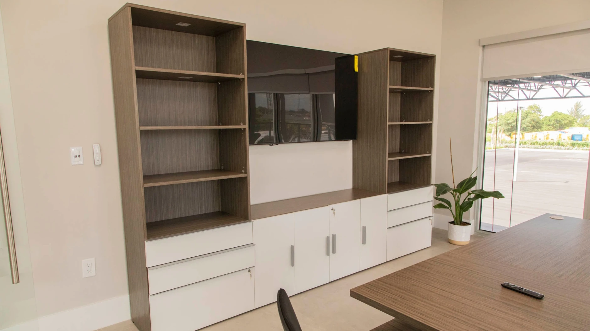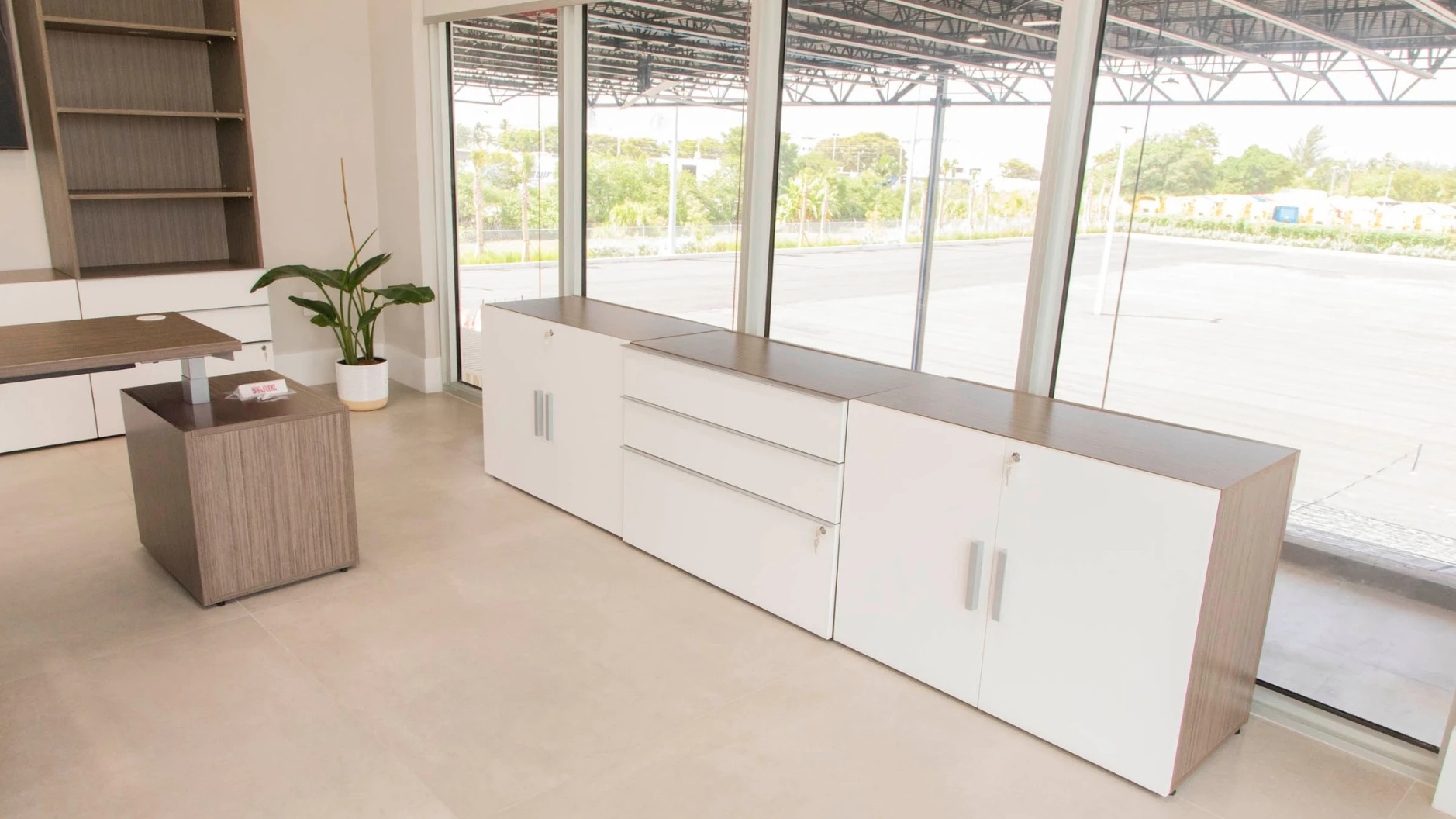 - Executive Offices – Premium furnishings tailored for leadership with height adjustable desking, wall paneling, and shelving