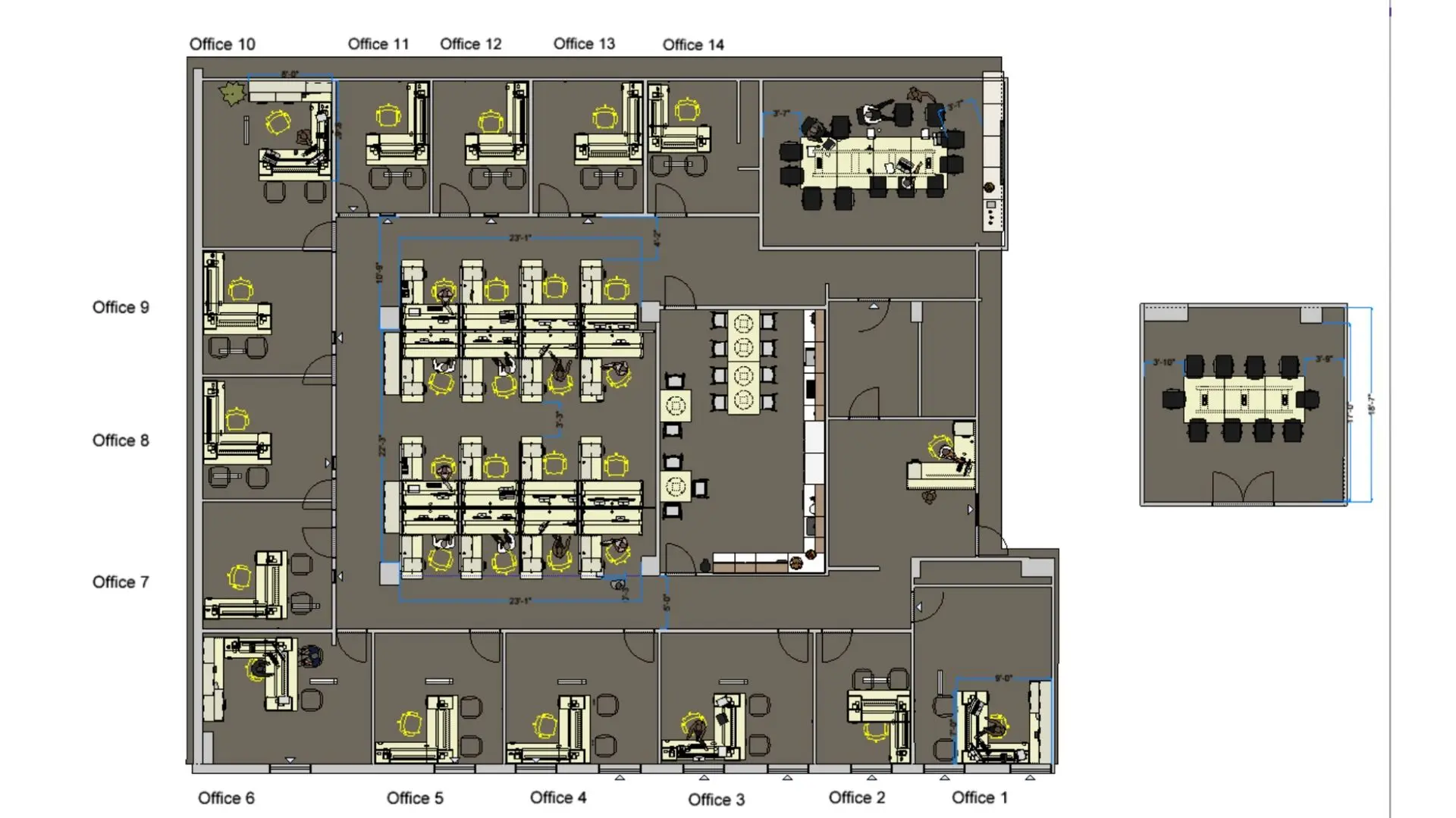 We offer photo-realistic renderings of your floor plan with our furniture solutions, helping you visualize your space.