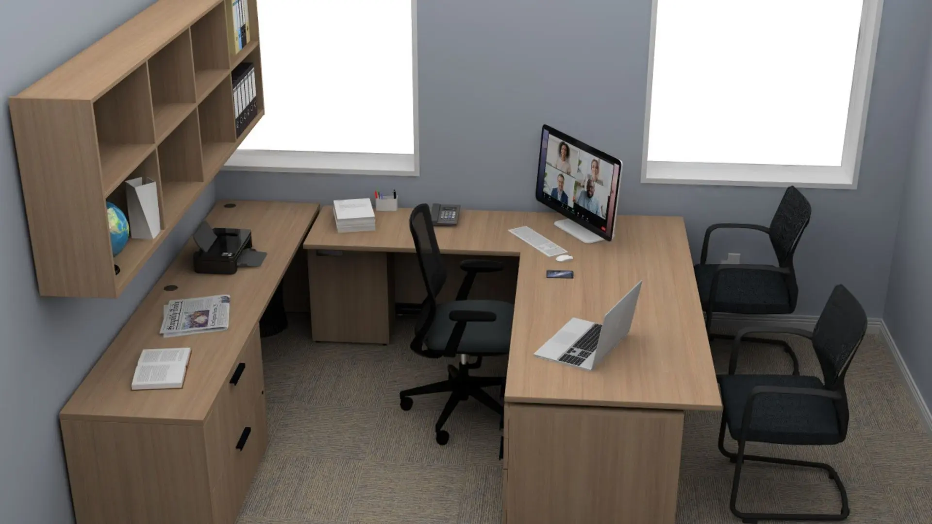 - Private Offices – L-shaped height adjustable desks, ergonomic chairs, and filing solutions
