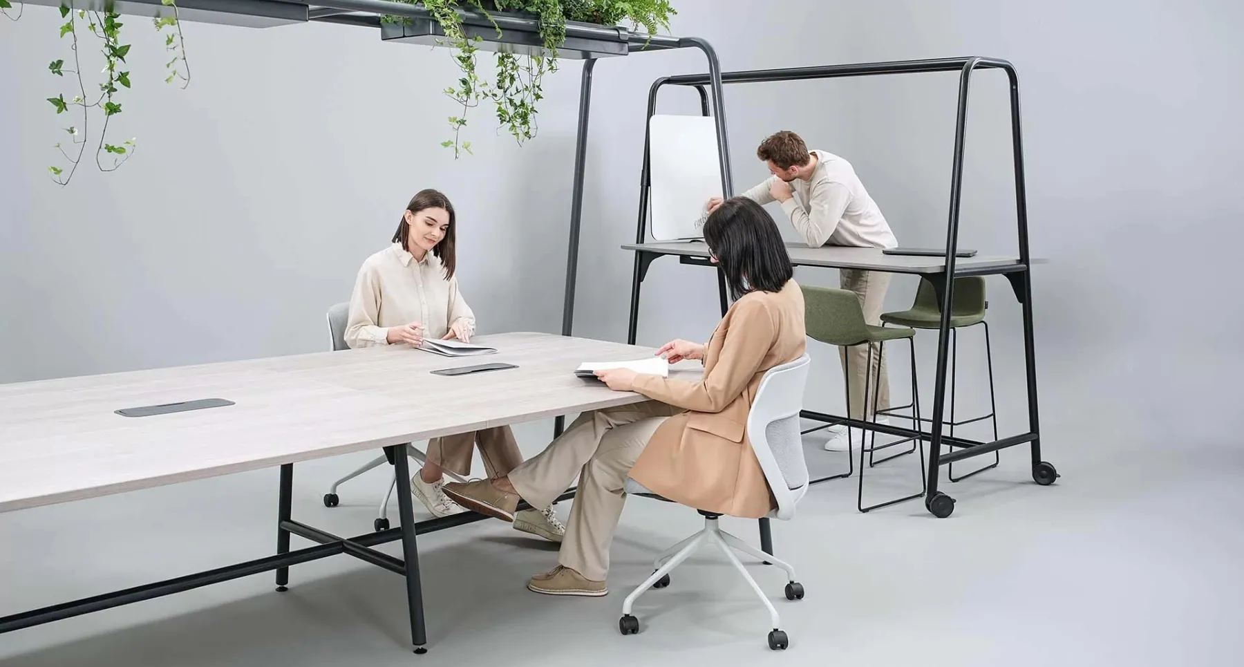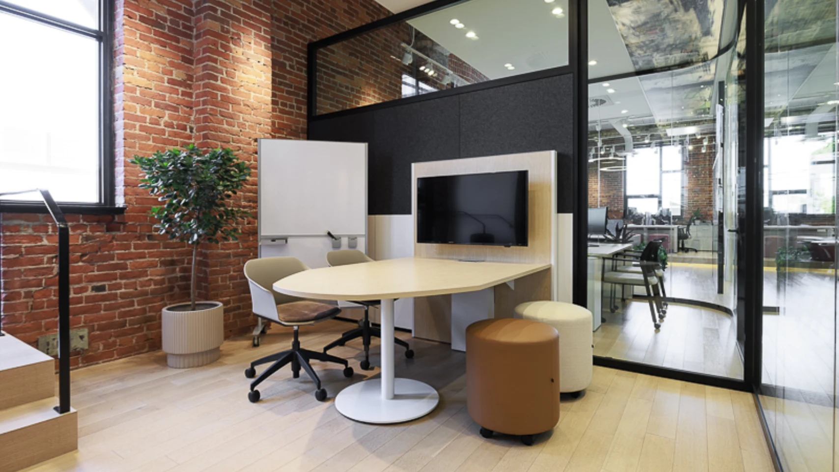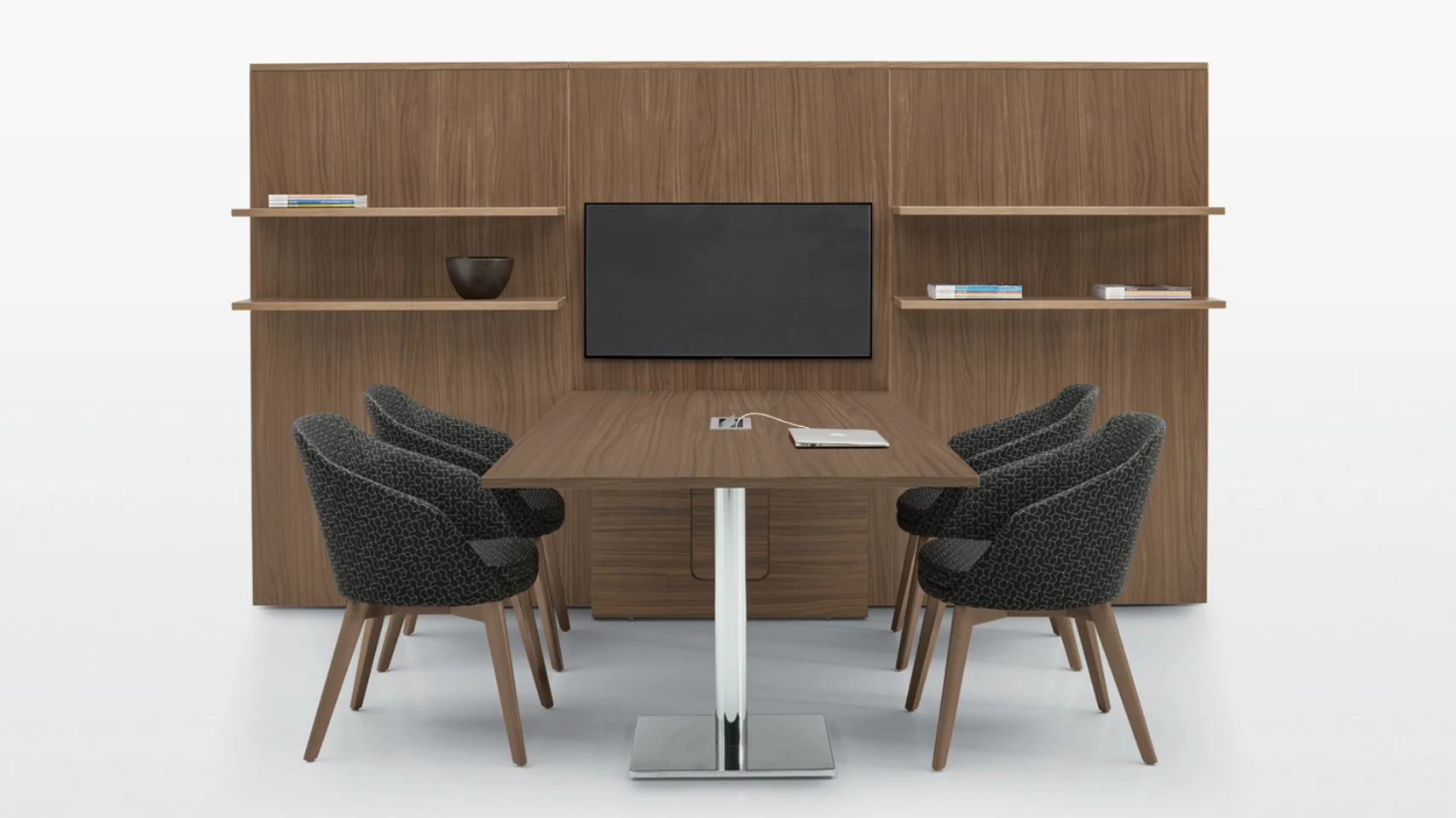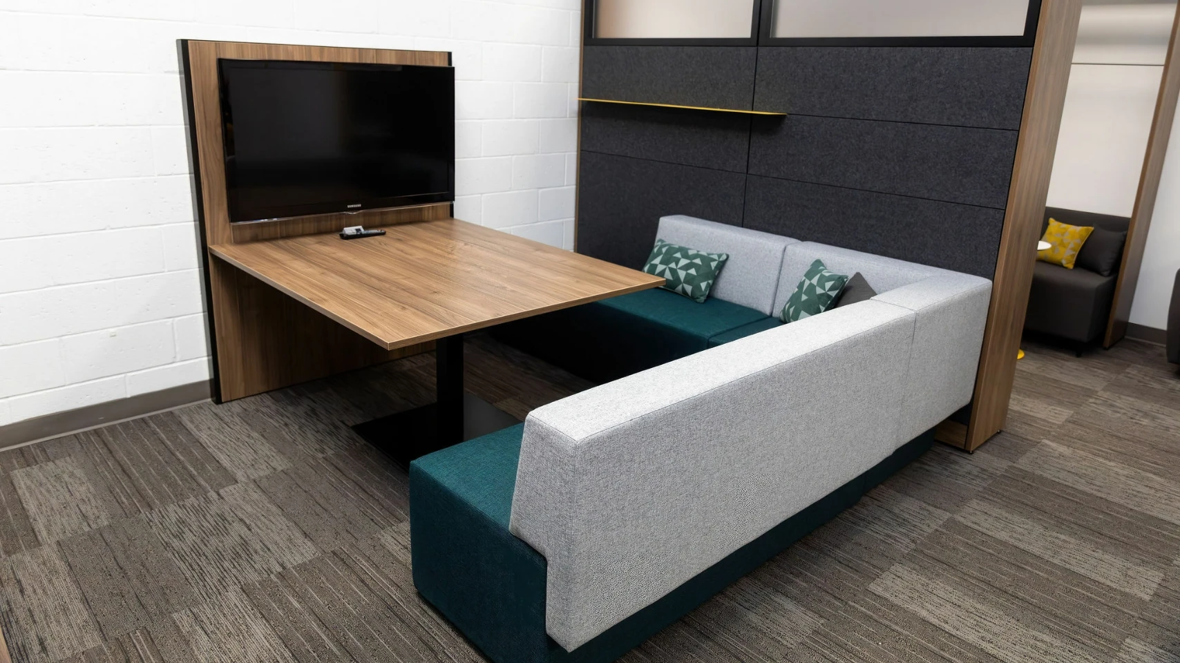 Today’s collaboration includes in-person and remote voices, often at the same time. That’s why our solutions integrate technology-friendly features like built-in power, charging ports, AV support, and even display-ready furniture. These elements make it easy to connect devices, share content, and bring in off-site teammates—without relying on a traditional conference room.