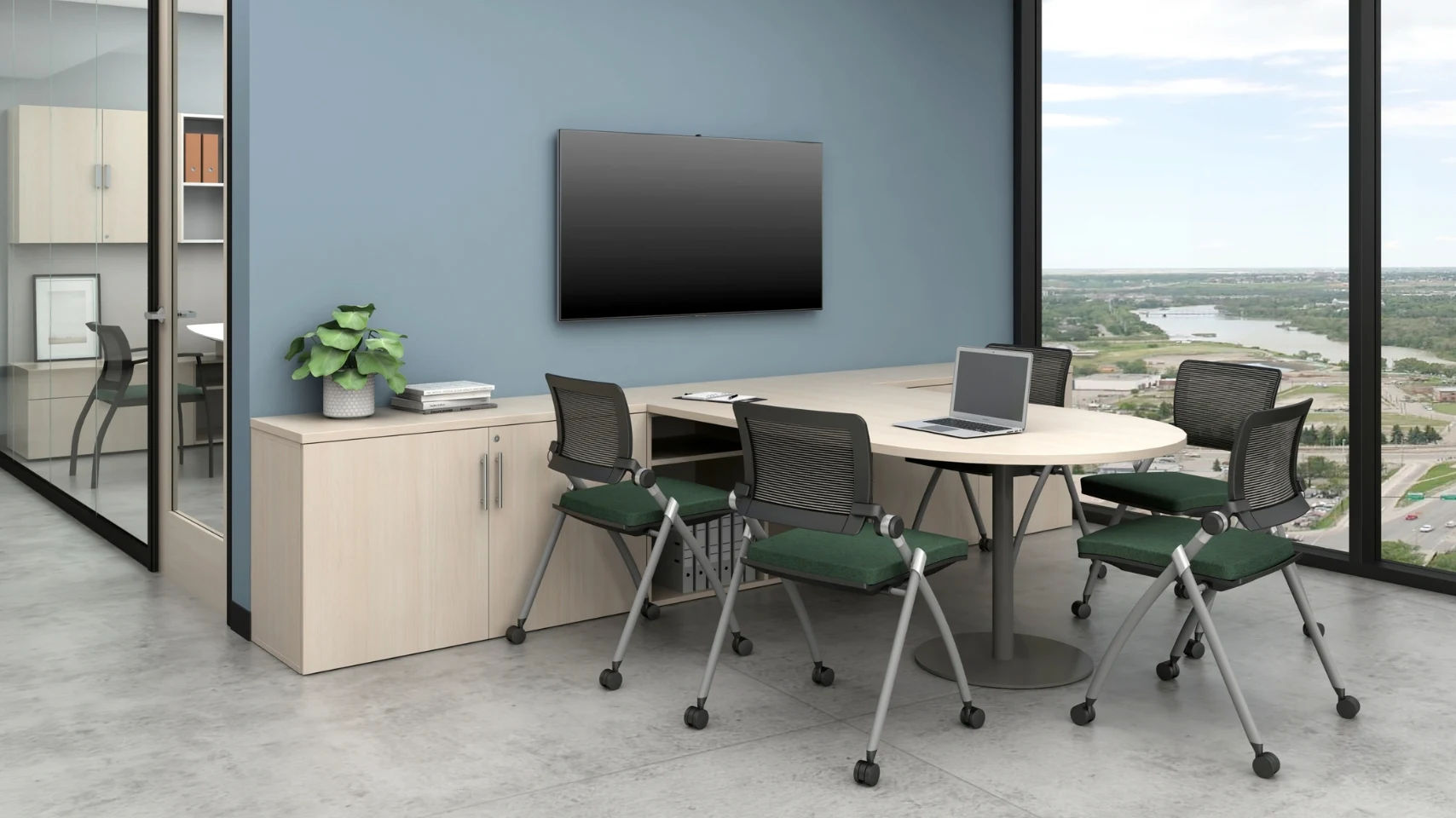 Collaboration rarely happens in a straight line—your seating shouldn’t either. We offer a wide variety of movable, comfortable seating options like rolling stools, stackable chairs, soft lounge seats, and mobile task chairs. These pieces let your teams shift between group discussions, small breakouts, or quick one-on-one chats without rearranging the entire space. It’s comfort with built-in versatility, designed to keep momentum going.