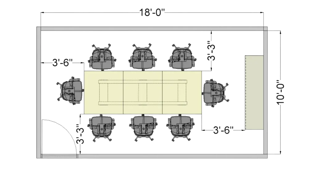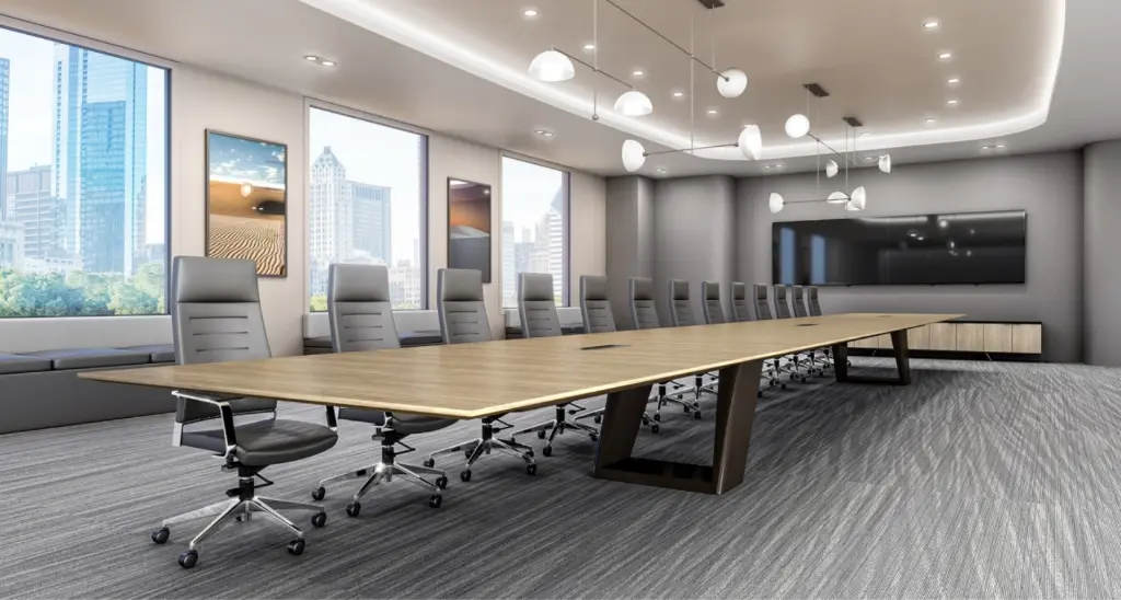 More than just placing furniture, we carefully plan your conference room layout to optimize functionality. We'll ensure there's enough space around the table for comfortable movement, proper sightlines to screens or whiteboards, and that the furniture placement enhances communication and engagement during meetings.