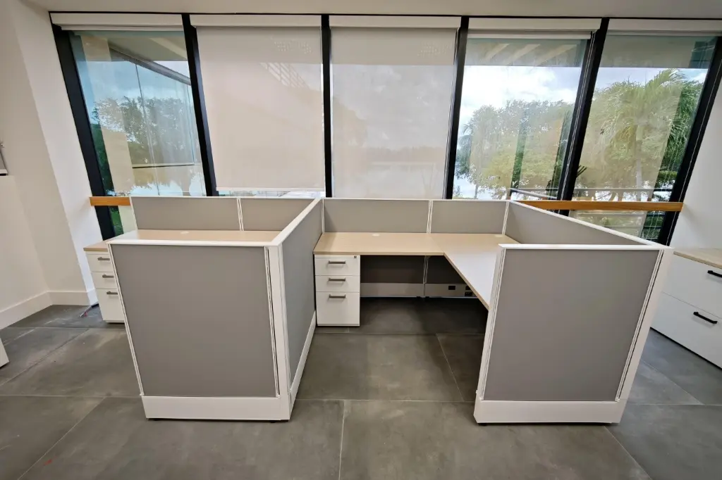 Explore our gallery of modern cubicle workstation designs that combine functionality with style. See how our solutions can transform your office into a productive and adaptable workspace.