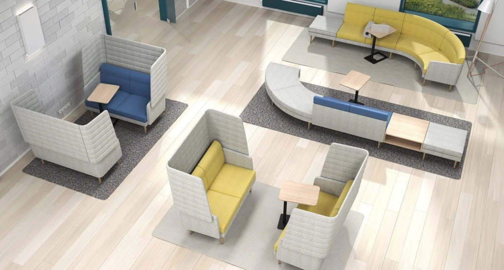 From quiet solo seating to collaborative pods, we’ll help you place each element with purpose. The result is a lounge area that looks good, feels welcoming, and functions as a true extension of your workplace—not an afterthought.