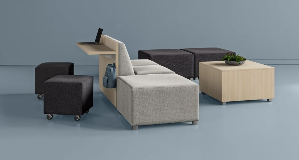 Keep your team connected and your lounge space functional with power modules, USB outlets, and built-in tables. Perfect for charging laptops during a one-on-one or powering a quick team huddle, these features make your lounge space work harder.